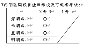 (內湖區設有資優班學校僅提供三年級安置,內湖區內之學校僅受理 113學年度就讀二年級學生 報名)