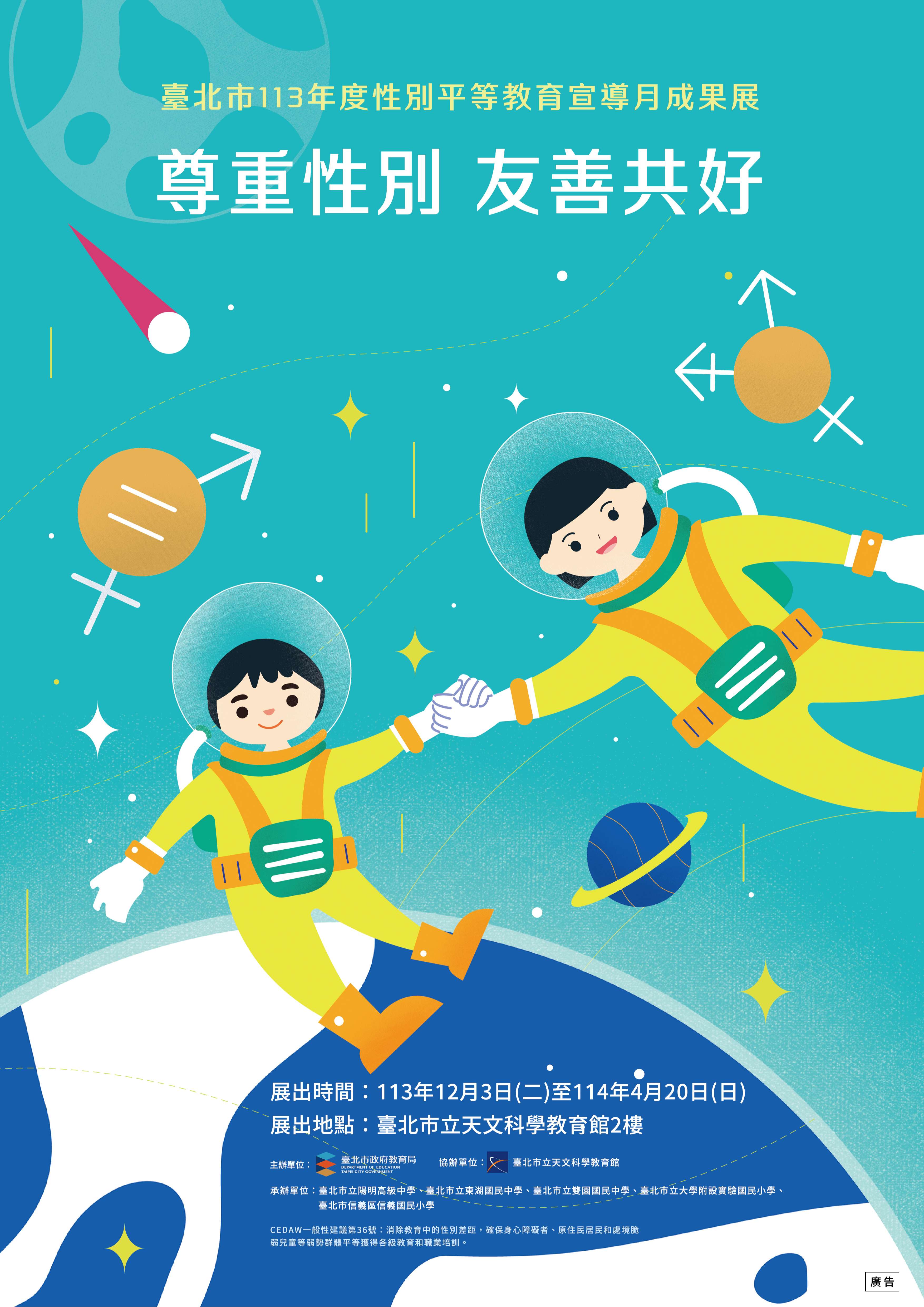 一、依據本市113年度性別平等教育宣導月「尊重性別 友善共好」成果展實施計畫辦理。
