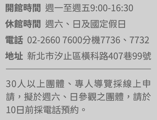 體驗館位於新北市汐止區橫科路407巷99號,距離國道 三號14K南港汐止交流道1公里,距離臺北捷運南港展覽館 站或臺北環東大道汐止出口2公里。至該館參觀之學校團 體,可申請遊覽車資補助,歡迎各級學校致電該所洽詢安 排參訪,聯絡電話02-26607600分機7732、7736,詳情亦可至該所官網(http://www.ilosh.gov.tw)/便民服務/勞安 加衛體驗館,進一步了解。